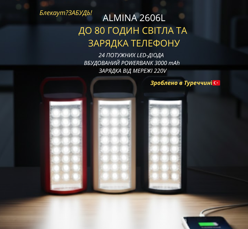 Забезпечте себе та свою родину яскравим світлом вже сьогодні. Almina 2606L — це не просто ліхтар, це ваш комфорт та спокій у будь-якій ситуації